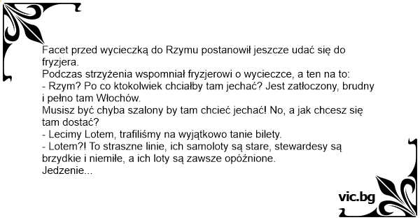 Facet przed wycieczką do Rzymu postanowił jeszcze udać się do fryzjera.