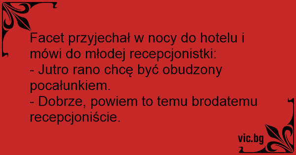 Facet przyjechał w nocy do hotelu i mówi do młodej recepcjonistki: