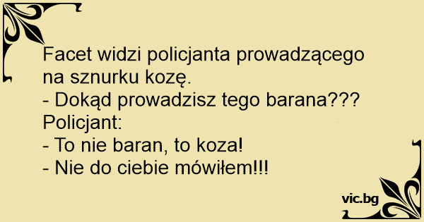 Facet widzi policjanta prowadzącego na sznurku kozę.