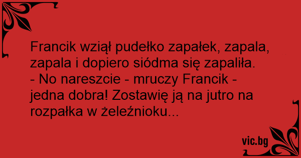 Francik wziął pudełko zapałek, zapala, zapala i dopiero siódma się zapaliła.