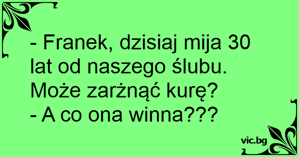 - Franek, dzisiaj mija 30 lat od naszego ślubu. Może zarżnąć kurę?