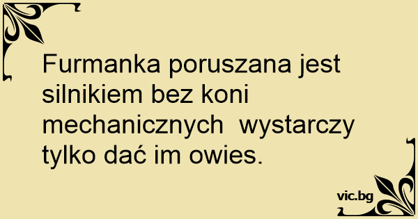 Furmanka poruszana jest silnikiem bez koni mechanicznych wystarczy tylko dać im owies.
