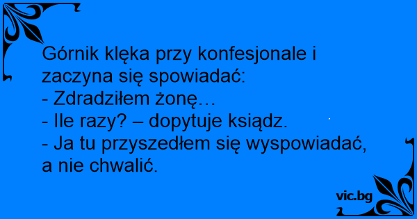 Górnik klęka przy konfesjonale i zaczyna się spowiadać: