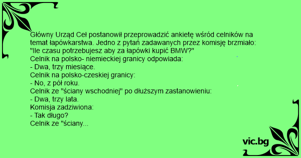 Główny Urząd Ceł postanowił przeprowadzić ankietę wśród celników na temat łapówkarstwa. Jedno z pytań zadawanych przez komisję brzmiało:
