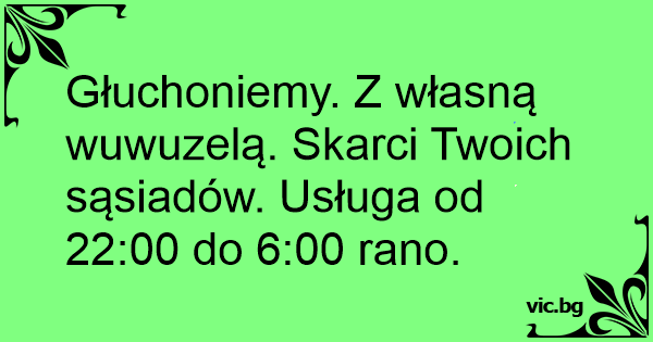 Głuchoniemy. Z własną wuwuzelą. Skarci Twoich sąsiadów. Usługa od 22:00 do 6:00 rano.