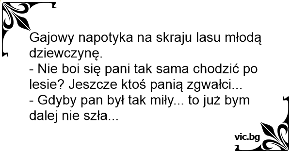 - Nie boi się pani tak sama chodzić po lesie? Jeszcze ktoś panią zgwałci...