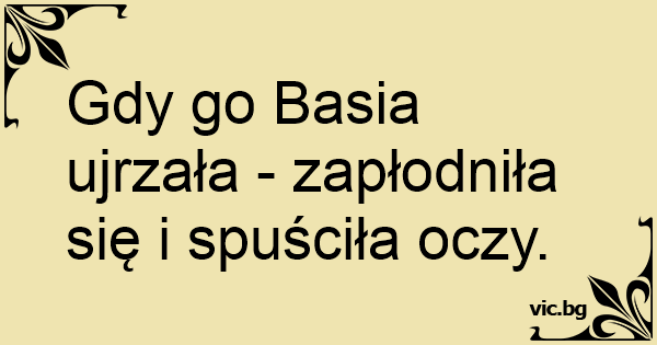 Gdy go Basia ujrzała - zapłodniła się i spuściła oczy.