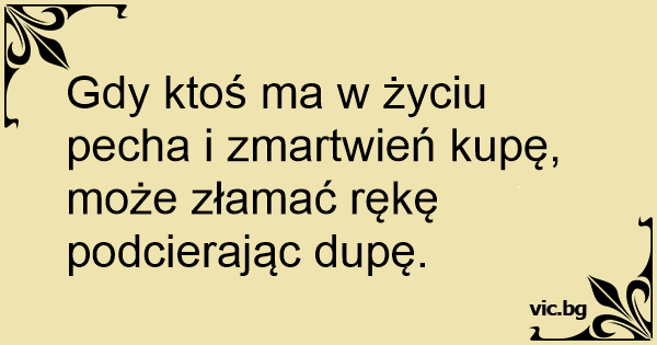 Gdy ktoś ma w życiu pecha i zmartwień kupę, może złamać rękę podcierając dupę.
