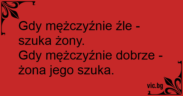 Gdy mężczyźnie dobrze - żona jego szuka.