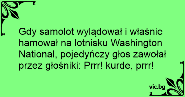 Gdy samolot wylądował i właśnie hamował na lotnisku Washington National, pojedyńczy głos zawołał przez głośniki: Prrr! kurde, prrr!