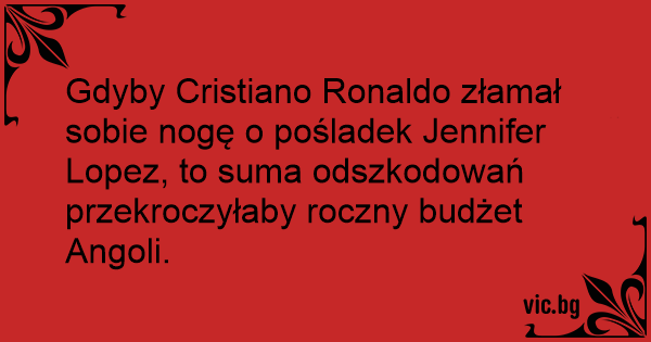Gdyby Cristiano Ronaldo złamał sobie nogę o pośladek Jennifer Lopez, to suma odszkodowań przekroczyłaby roczny budżet Angoli.