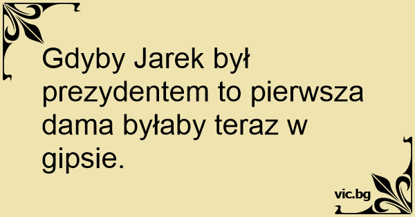 Gdyby Jarek był prezydentem to pierwsza dama byłaby teraz w gipsie.