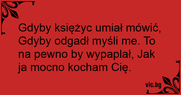 Gdyby księżyc umiał mówić, Gdyby odgadł myśli me. To na pewno by wypaplał, Jak ja mocno kocham Cię.