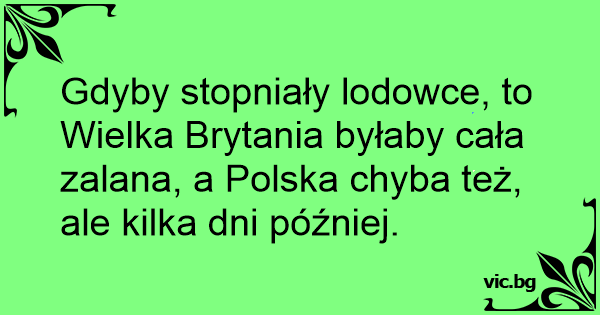 Gdyby stopniały lodowce, to Wielka Brytania byłaby cała zalana, a Polska chyba też, ale kilka dni później.