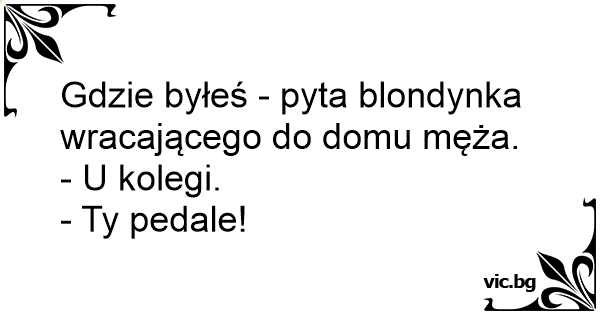 Gdzie byłeś - pyta blondynka wracającego do domu męża.
