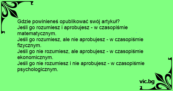 Jeśli go nie rozumiesz, ale aprobujesz - w czasopiśmie ekonomicznym.