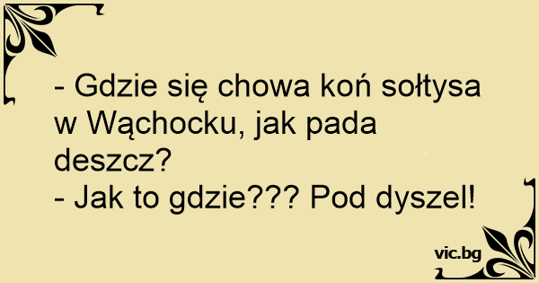 - Gdzie się chowa koń sołtysa w Wąchocku, jak pada deszcz?
