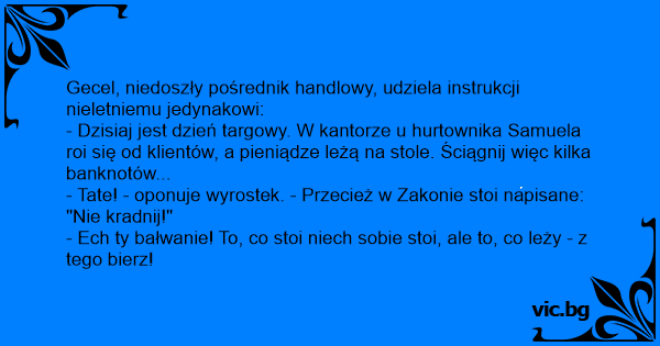 - Tate! - oponuje wyrostek. - Przecież w Zakonie stoi napisane: