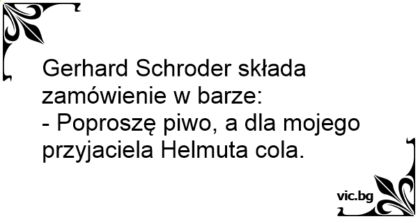 - Poproszę piwo, a dla mojego przyjaciela Helmuta cola.