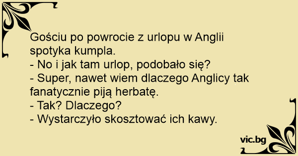 - Super, nawet wiem dlaczego Anglicy tak fanatycznie piją herbatę.