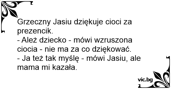 - Ależ dziecko - mówi wzruszona ciocia - nie ma za co dziękować.