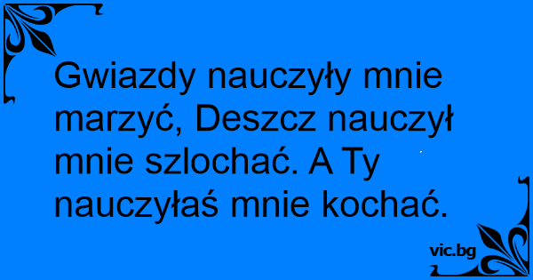 Gwiazdy nauczyły mnie marzyć, Deszcz nauczył mnie szlochać. A Ty nauczyłaś mnie kochać.