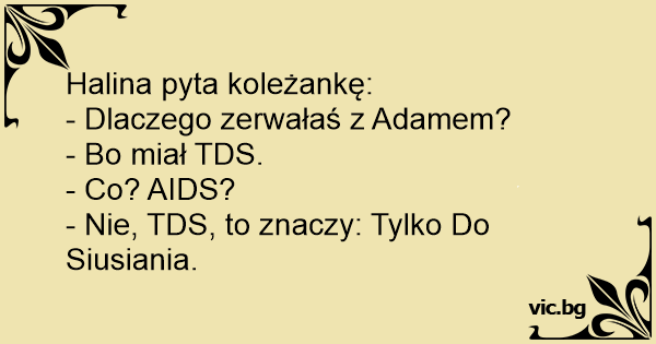 - Nie, TDS, to znaczy: Tylko Do Siusiania.