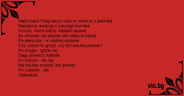 Halo! halo! Tutaj kacze radio w mieście z piernika,