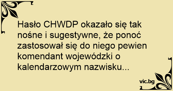 Hasło CHWDP okazało się tak nośne i sugestywne, że ponoć zastosował się do niego pewien komendant wojewódzki o kalendarzowym nazwisku...