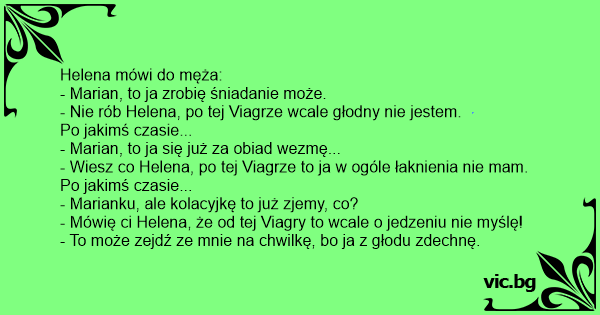 - Wiesz co Helena, po tej Viagrze to ja w ogóle łaknienia nie mam.