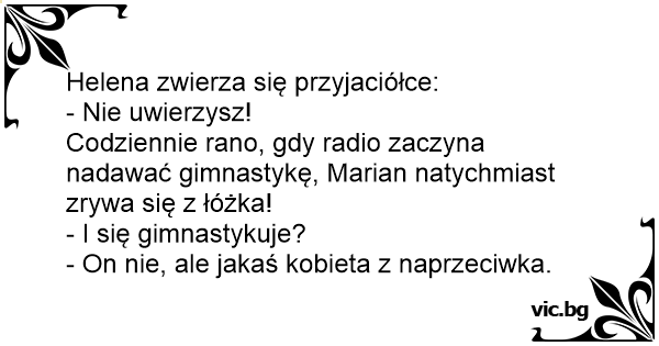 Codziennie rano, gdy radio zaczyna nadawać gimnastykę, Marian natychmiast zrywa się z łóżka!