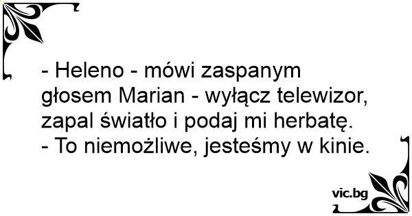 - Heleno - mówi zaspanym głosem Marian - wyłącz telewizor, zapal światło i podaj mi herbatę.