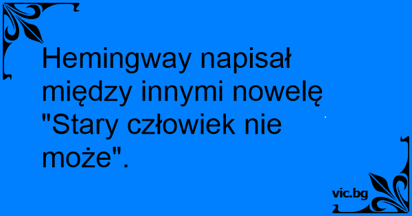 Hemingway napisał między innymi nowelę "Stary człowiek nie może".