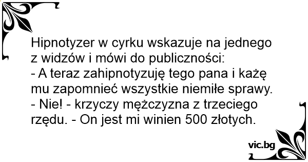 - A teraz zahipnotyzuję tego pana i każę mu zapomnieć wszystkie niemiłe sprawy.