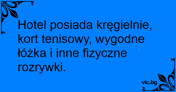 Hotel posiada kręgielnie, kort tenisowy, wygodne łóżka i inne fizyczne rozrywki.
