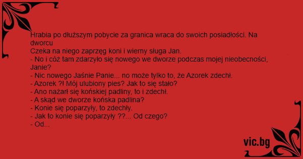 - Nic nowego Jaśnie Panie... no może tylko to, że Azorek zdechł.