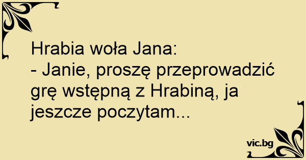- Janie, proszę przeprowadzić grę wstępną z Hrabiną, ja jeszcze poczytam...