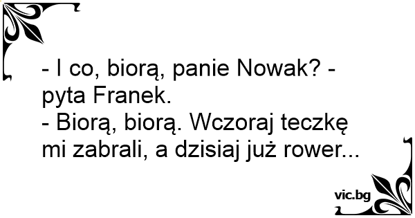 - Biorą, biorą. Wczoraj teczkę mi zabrali, a dzisiaj już rower...