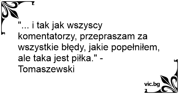 "... i tak jak wszyscy komentatorzy, przepraszam za wszystkie błędy, jakie popełniłem, ale taka jest piłka." - Tomaszewski