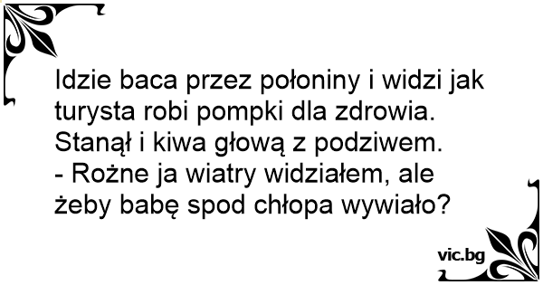 Idzie baca przez połoniny i widzi jak turysta robi pompki dla zdrowia.
