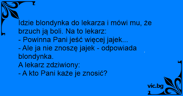 Idzie blondynka do lekarza i mówi mu, że brzuch ją boli. Na to lekarz: