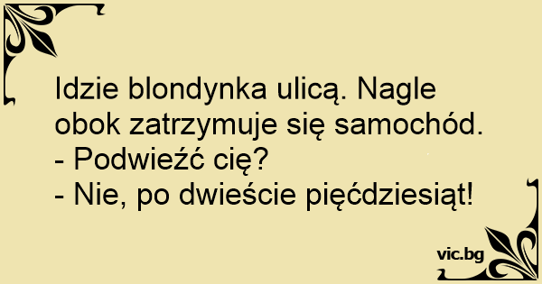Idzie blondynka ulicą. Nagle obok zatrzymuje się samochód.