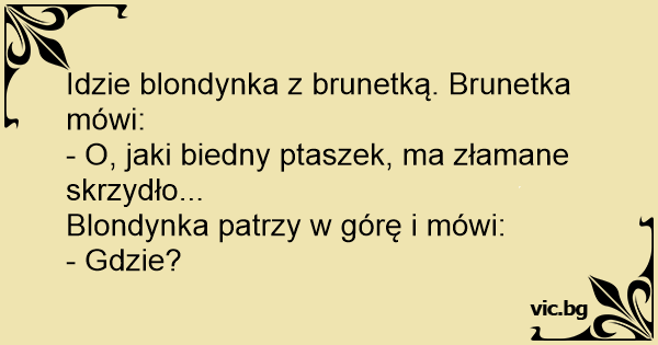 Idzie blondynka z brunetką. Brunetka mówi: