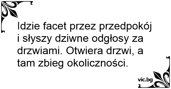 Idzie facet przez przedpokój i słyszy dziwne odgłosy za drzwiami. Otwiera drzwi, a tam zbieg okoliczności.