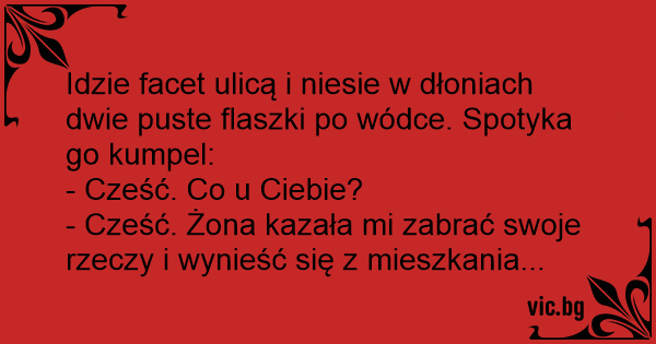 Idzie facet ulicą i niesie w dłoniach dwie puste flaszki po wódce. Spotyka go kumpel: