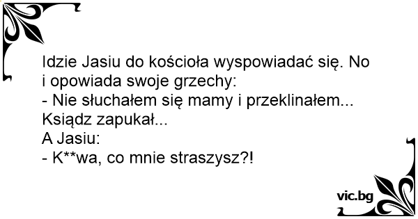 Idzie Jasiu do kościoła wyspowiadać się. No i opowiada swoje grzechy: