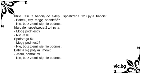 Idzie Jasiu z babcią do sklepu, spostrzega 1zł i pyta babcię: