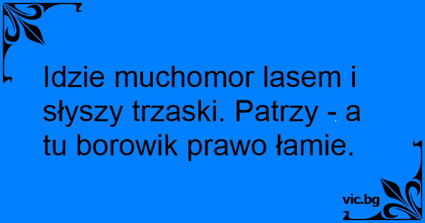Idzie muchomor lasem i słyszy trzaski. Patrzy - a tu borowik prawo łamie.