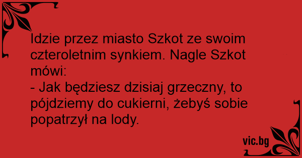 Idzie przez miasto Szkot ze swoim czteroletnim synkiem. Nagle Szkot mówi: