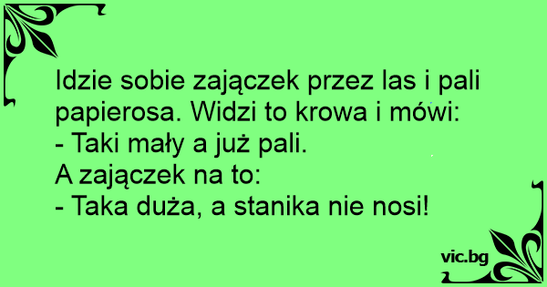 Idzie sobie zajączek przez las i pali papierosa. Widzi to krowa i mówi: